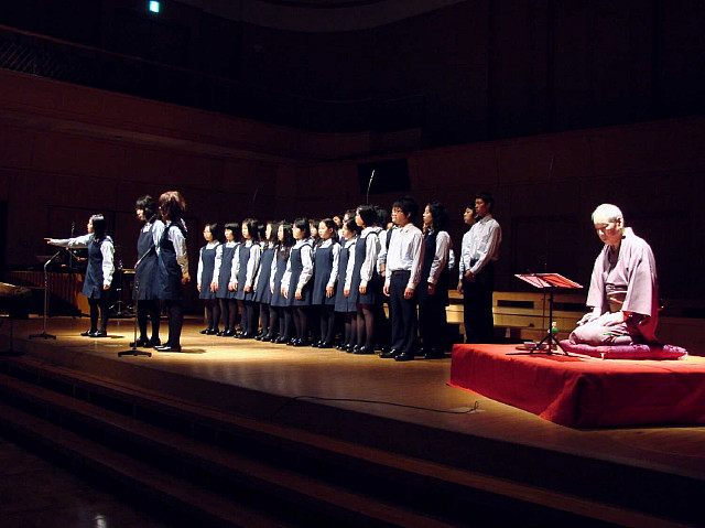 今回「児童合唱のための声明」の作曲のお話しを頂きましたが、私は僧でもなく一介の音楽家です。1300年もの問、厳しい作法を守リ、脈々と受け継がれた歴史を知りながら、浅はかな知識で新たに声明を作る勇気はとてもありませんでした。